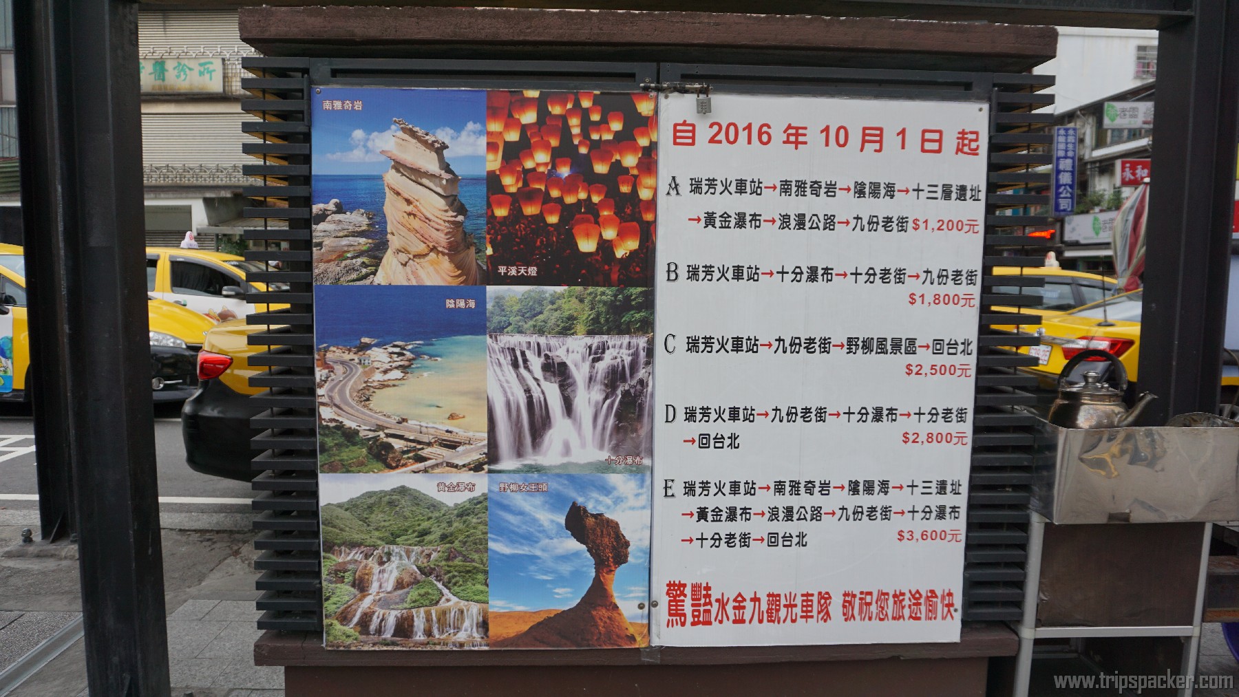 ตรงหน้าสถานีรถไฟ Ruifang นี้จะมีป้ายรถบัสและรถเเท็กซี่ ให้บริการอยู่ครับ โดยรถเเท็กซี่จะรับเหมาเที่ยวไปยังสถานที่ต่างๆ ตามภาพเลยครับ ส่วนในเรื่องของราคาก็ขึ้นอยู่กับความสามารถในการต่อรองของแต่ละคนครับ!