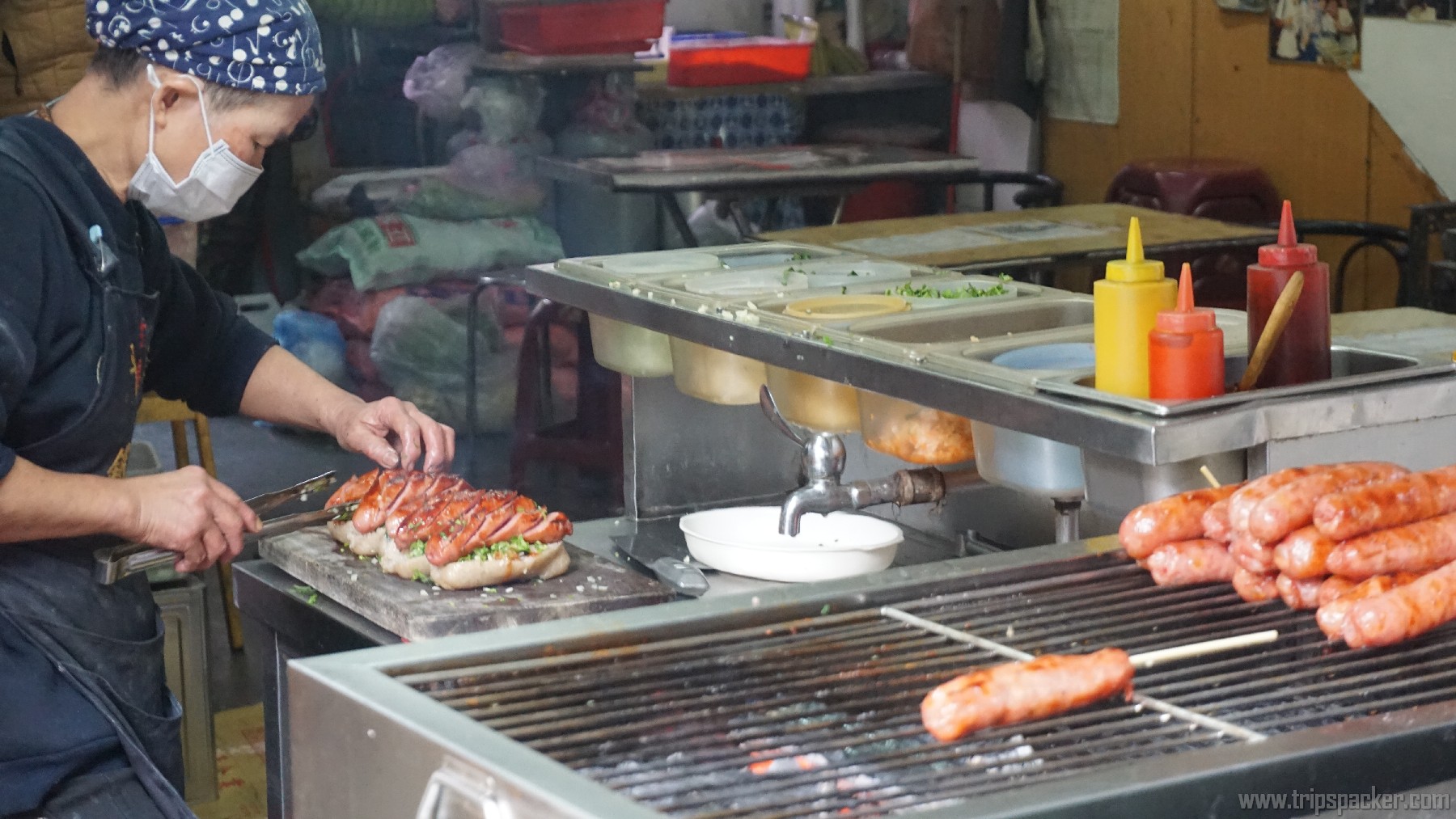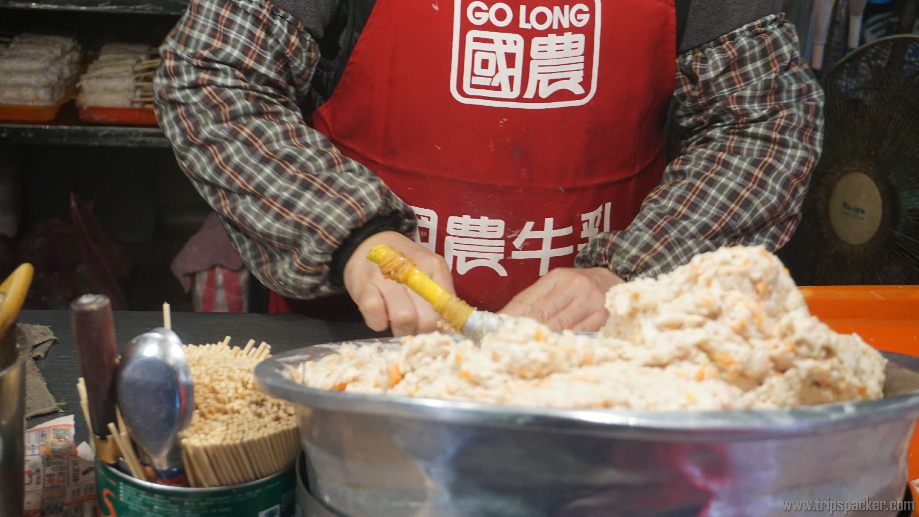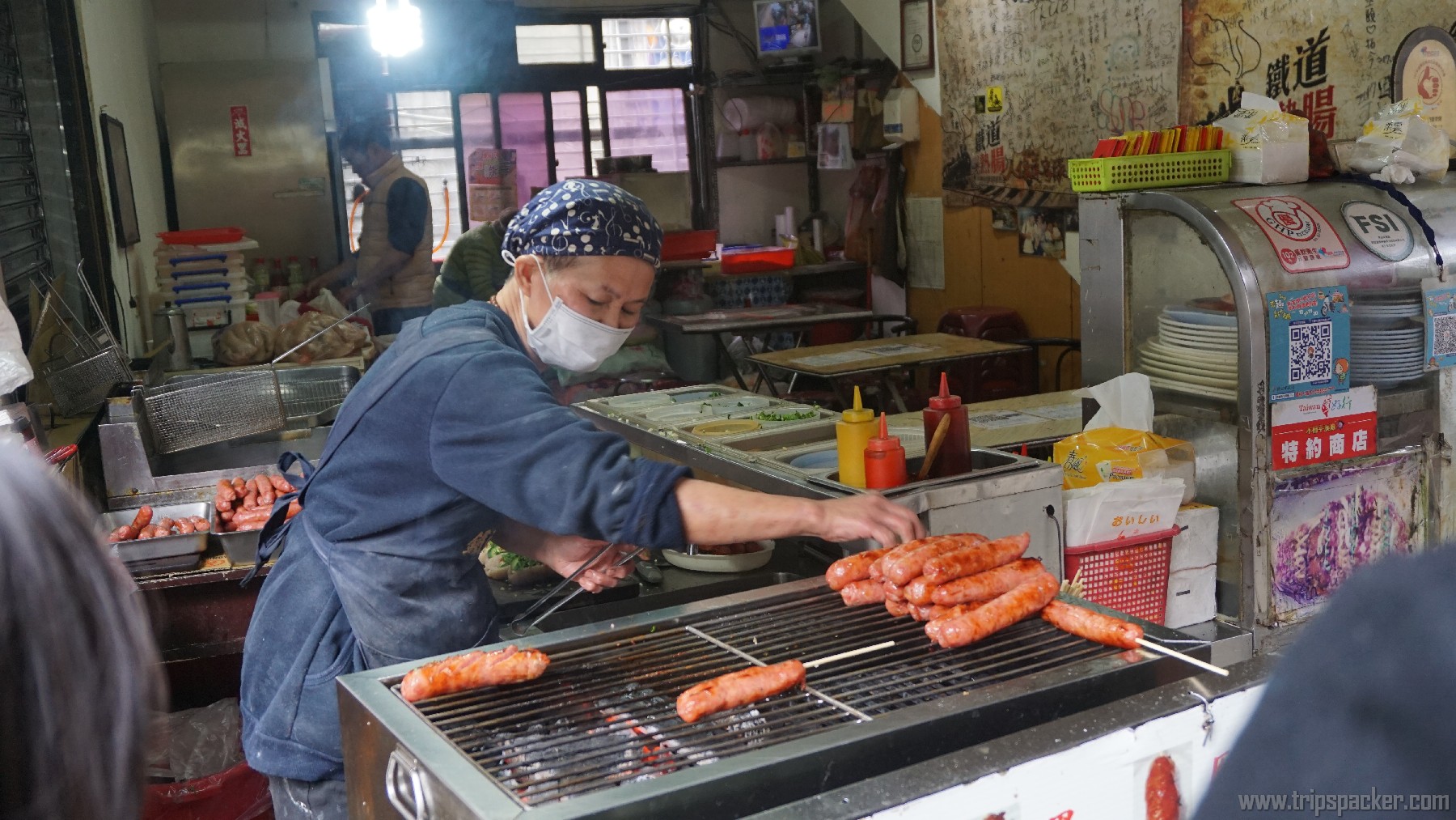 ส่วนอันนี้อารมย์แบบใส้กรอกอีสานบ้านเราครับ ต่างกันแค่เอาไปทอดและมีน้ำจิ้ม โดยเขาจะทำให้เราเห็นสดๆ เลย คนต่อแถวเยอะมากกก! ชิ้นละ 10 TWD