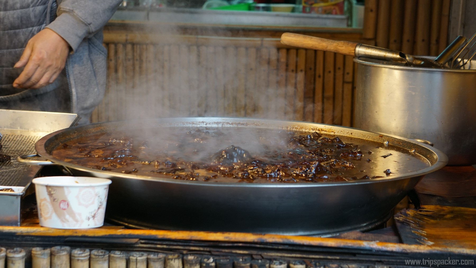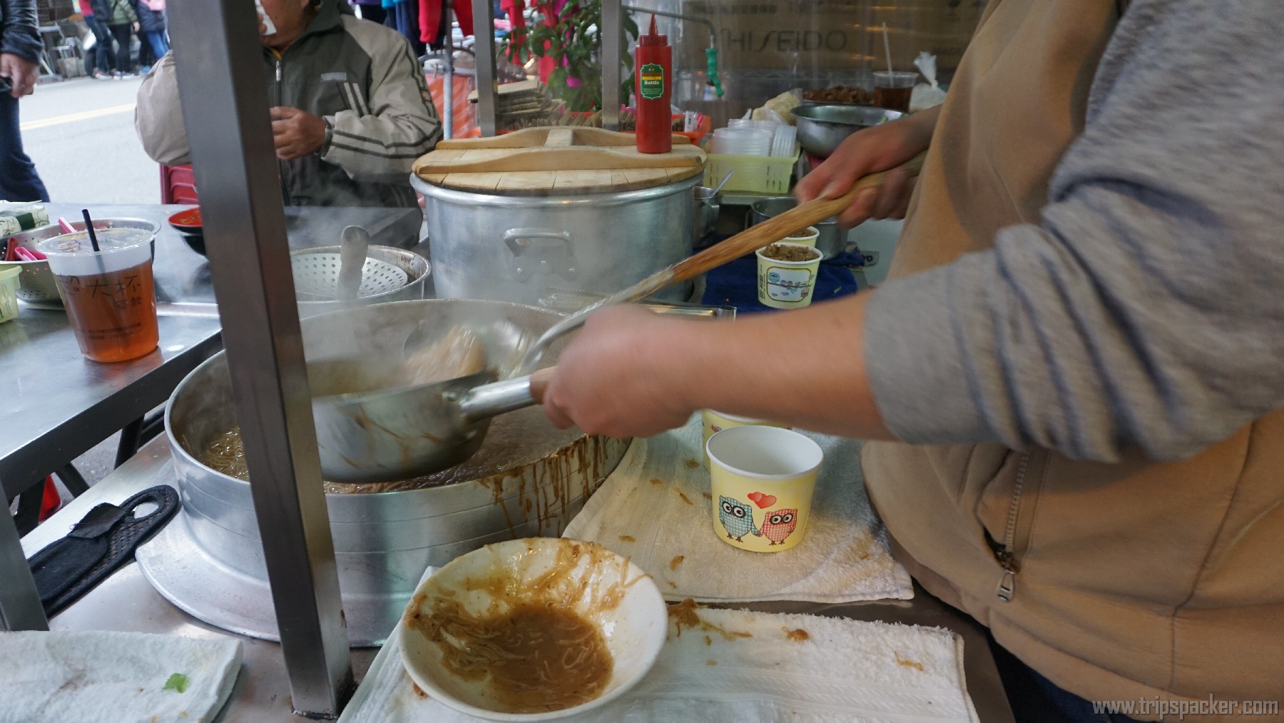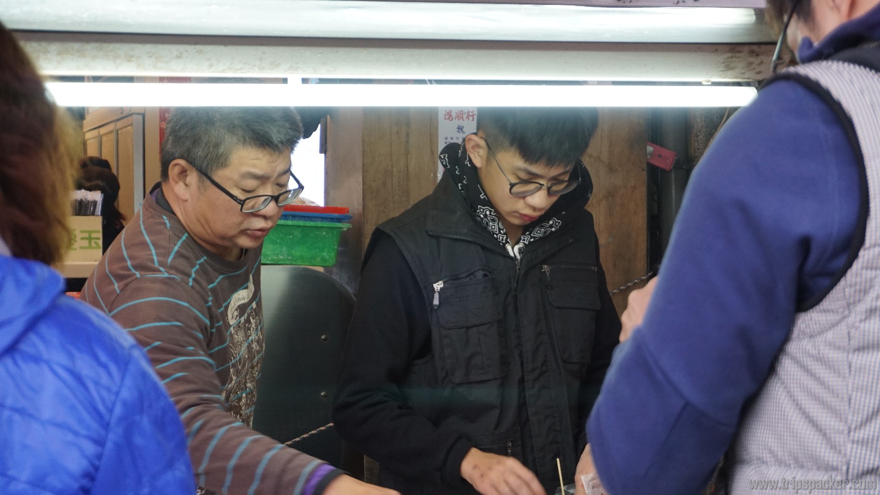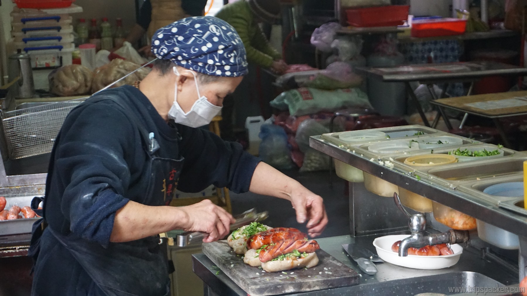 ส่วนอันนี้อารมย์แบบใส้กรอกอีสานบ้านเราครับ ต่างกันแค่เอาไปทอดและมีน้ำจิ้ม โดยเขาจะทำให้เราเห็นสดๆ เลย คนต่อแถวเยอะมากกก! ชิ้นละ 10 TWD