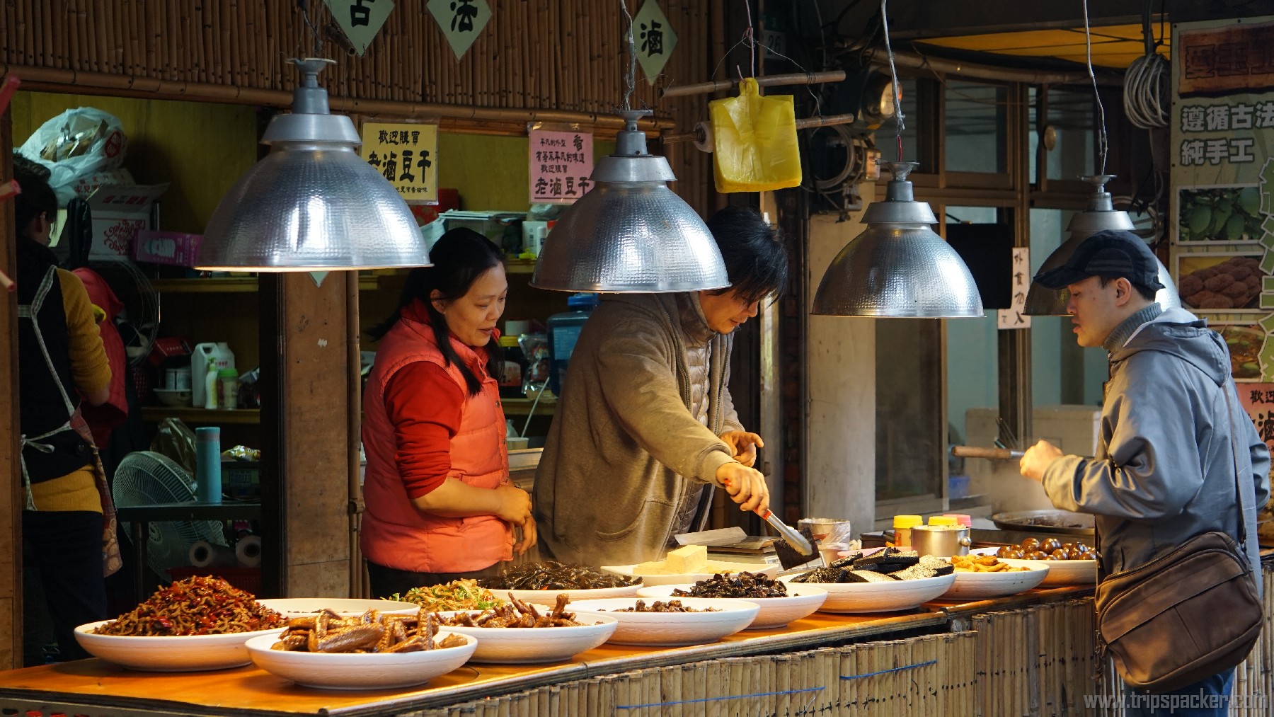 จากนั้นก็เข้านอนครับ…ต่อมาก็ตื่นกันแต่เช้าเพื่อที่จะไปซื้อตั๋วรถไฟสายผิงซี(Pingxi)กันครับ ออกมาจากที่พักก็จะเจอตลาดเช้า มีของกินเยอะเหมือนเดิมครับ