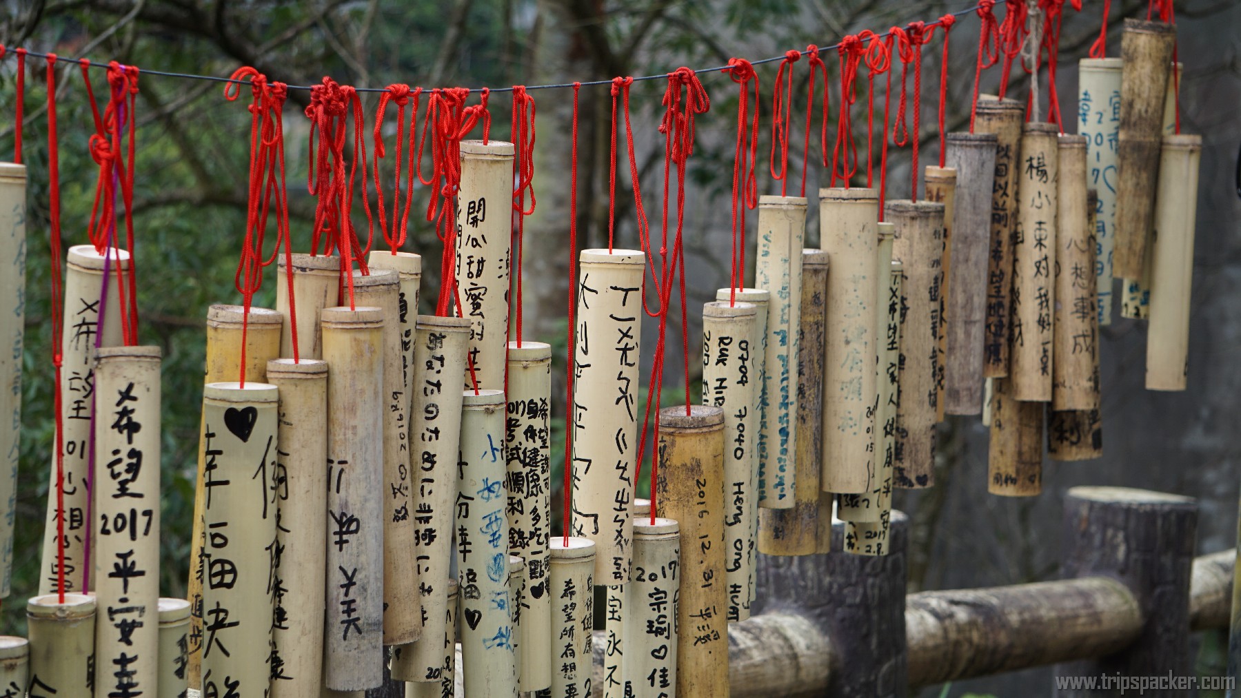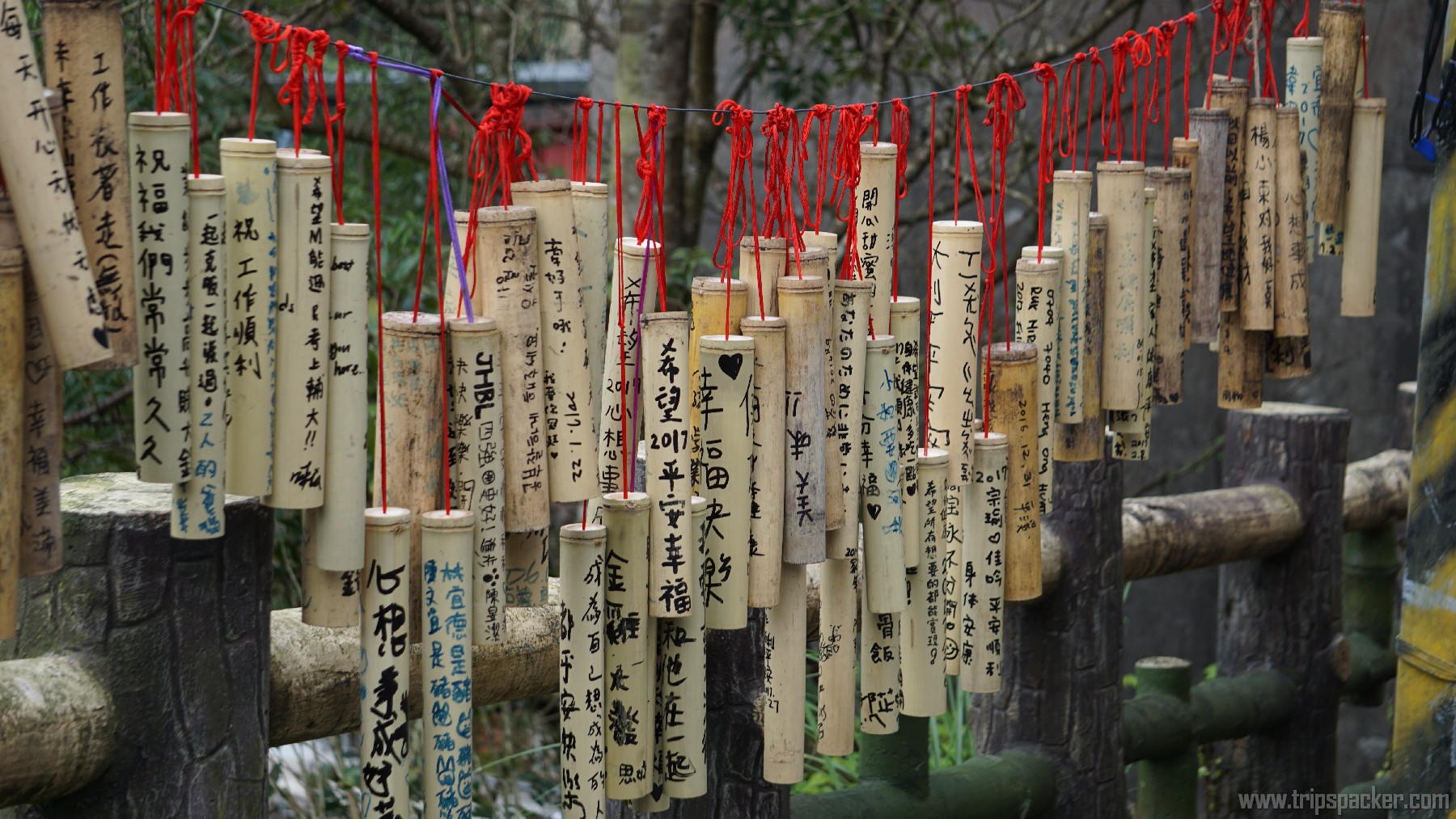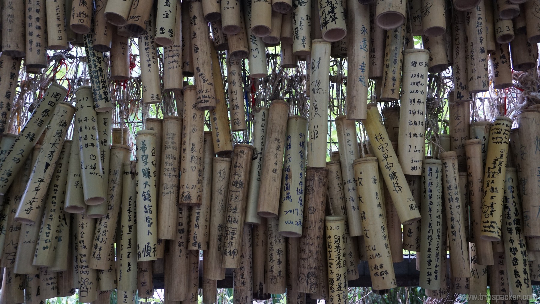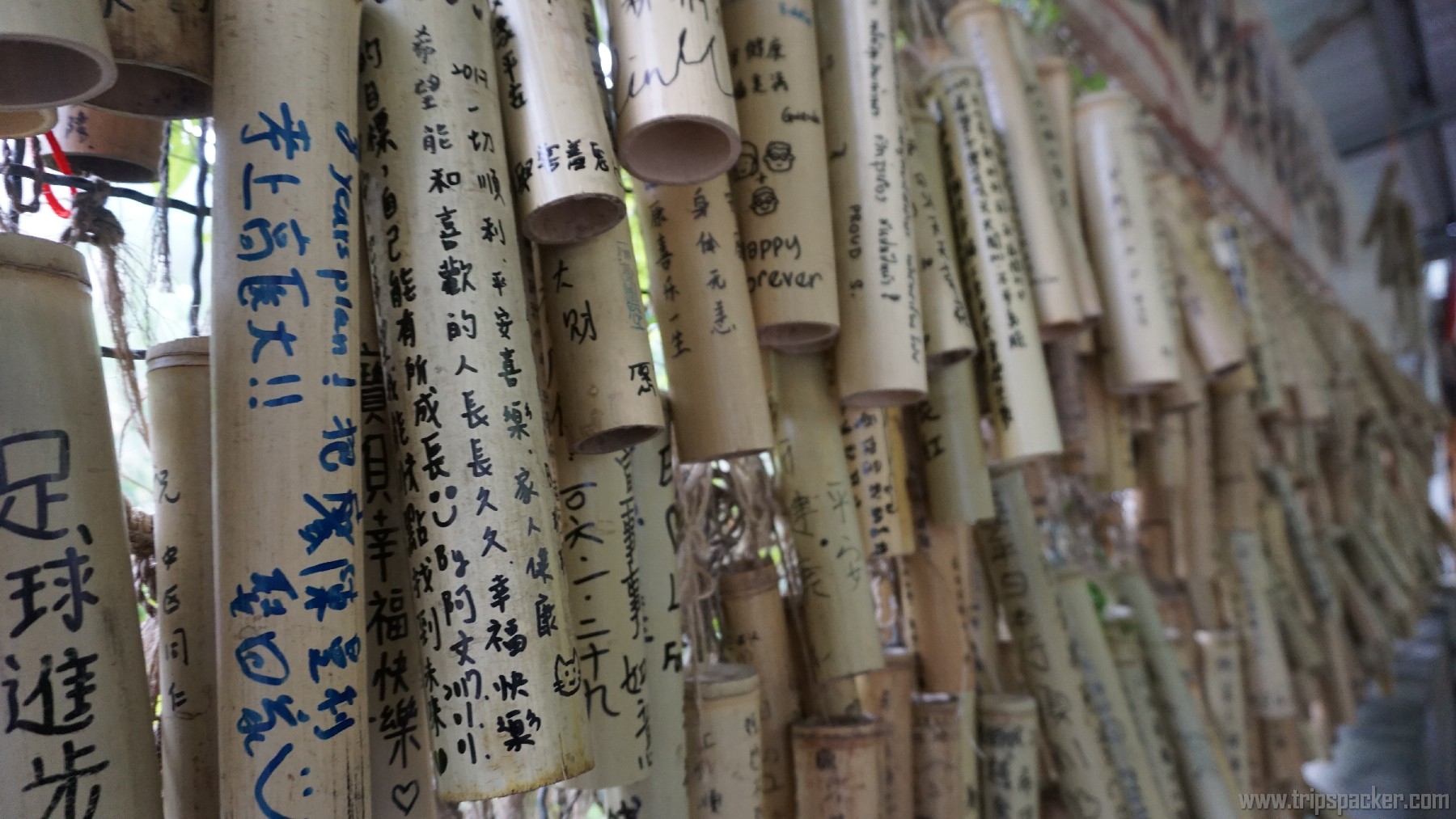 ลงจากรถไฟปุ๊ปก็จะเจอกลับมวลมหากระบอกไม้ไผ่ ซึ่งคนส่วนใหญ่จะมาเขียนคำอธิฐานขอพรกัน และจะเเขวนไว้ที่นี้ครับ