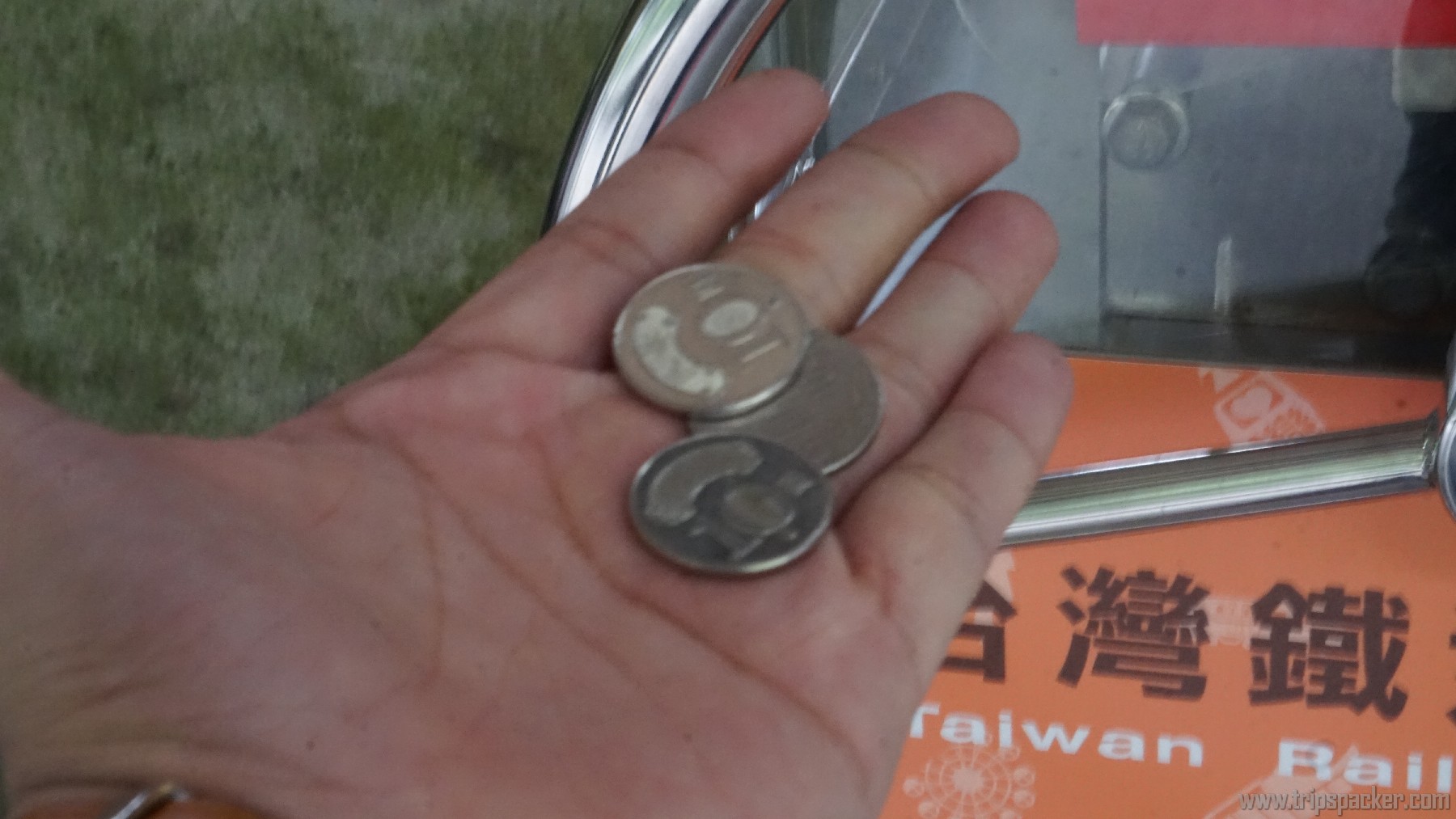 - หยอดเหรียญ 10 TWD จำนวน 3 เหรียญ ลงไป