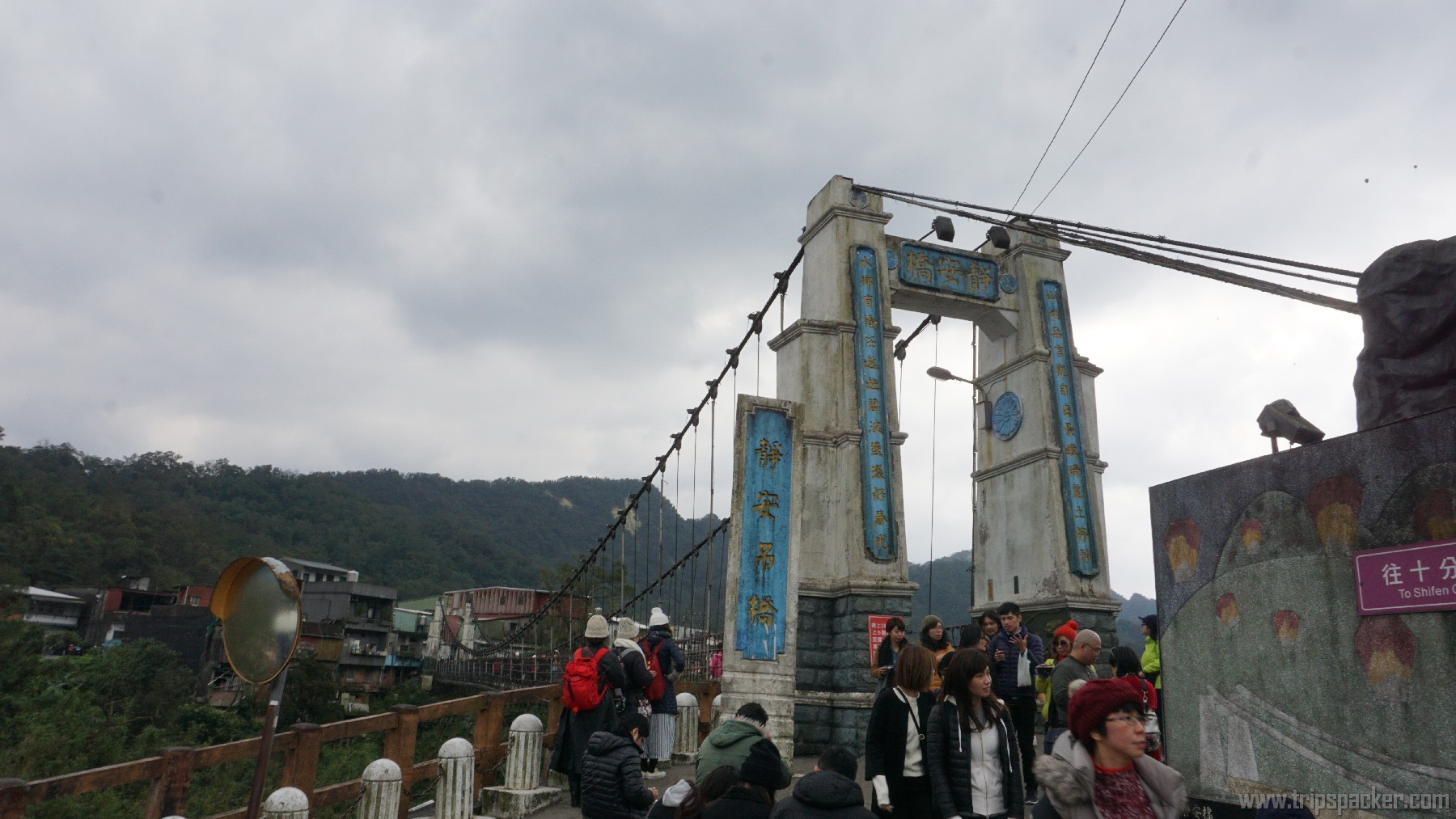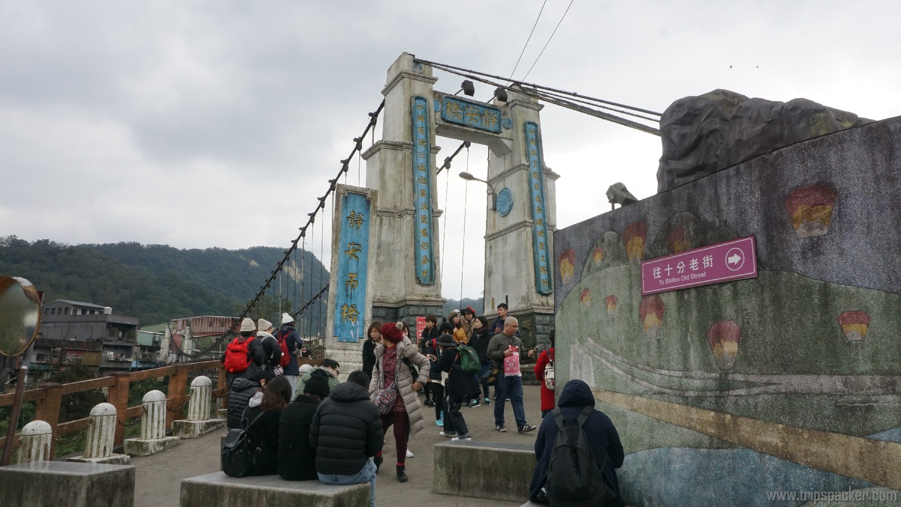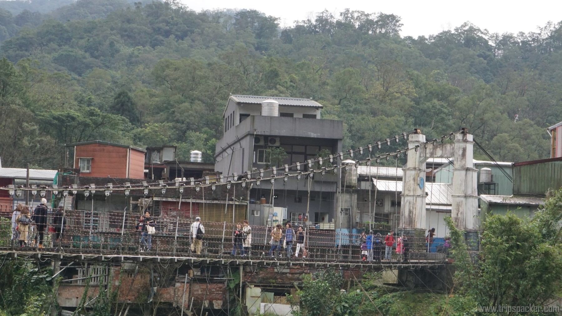 ส่วนฝั่งจรงข้ามสถานีรถไฟ Shifen ก็จะเป็นสะพานแขวนครับ ซึ่งเป็นสะพานแขวนข้ามแม่น้ำ ที่สูงเเละยาวทีเดียว