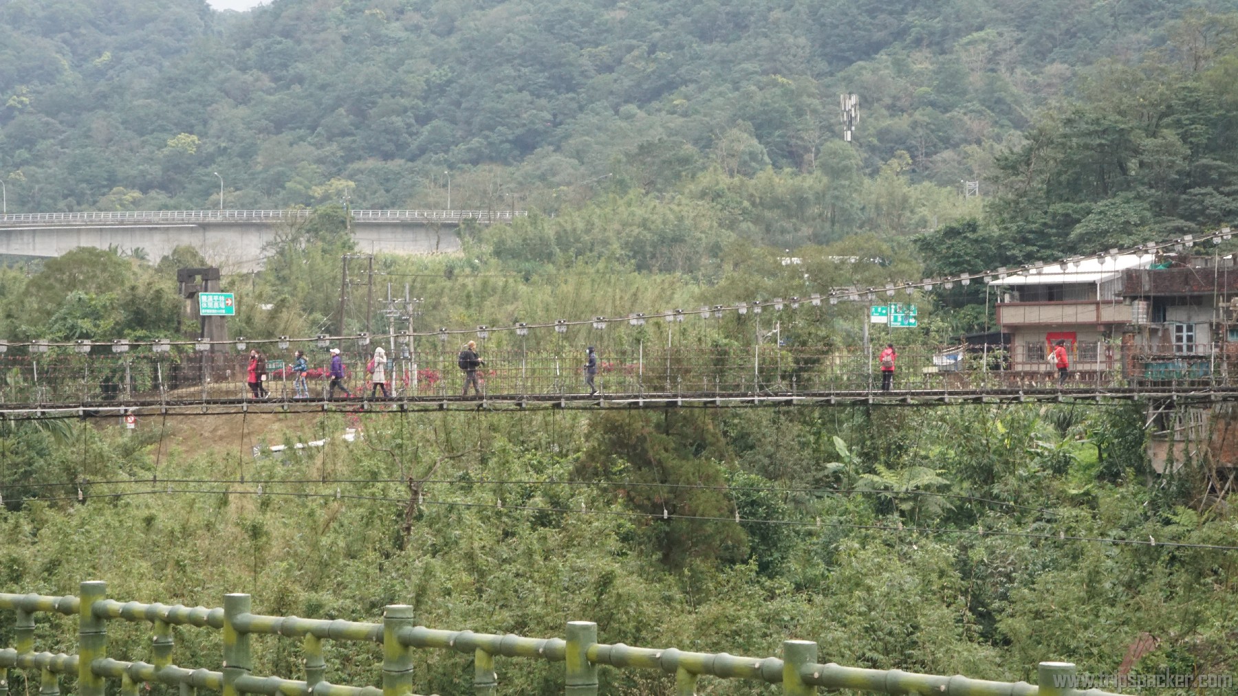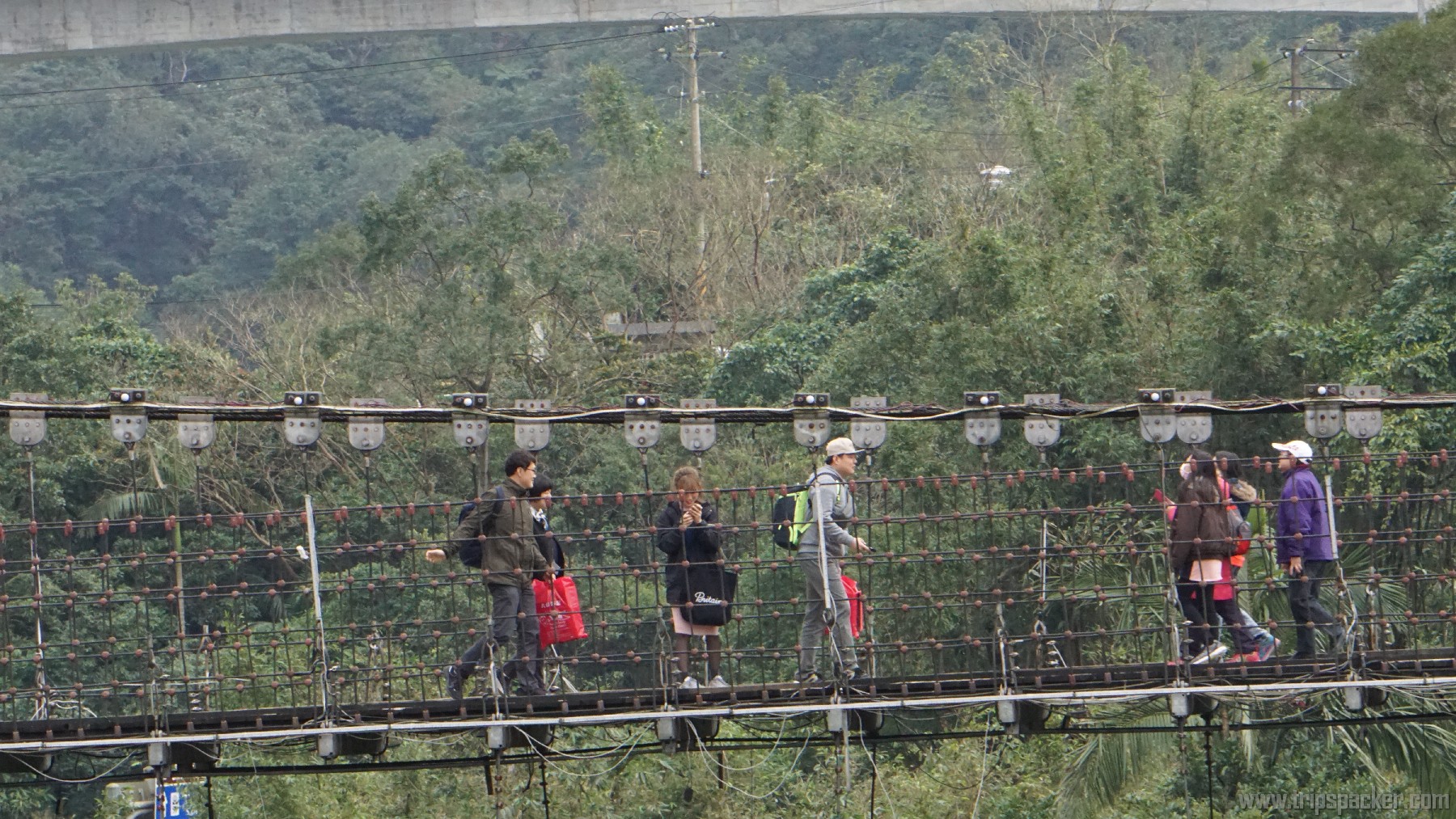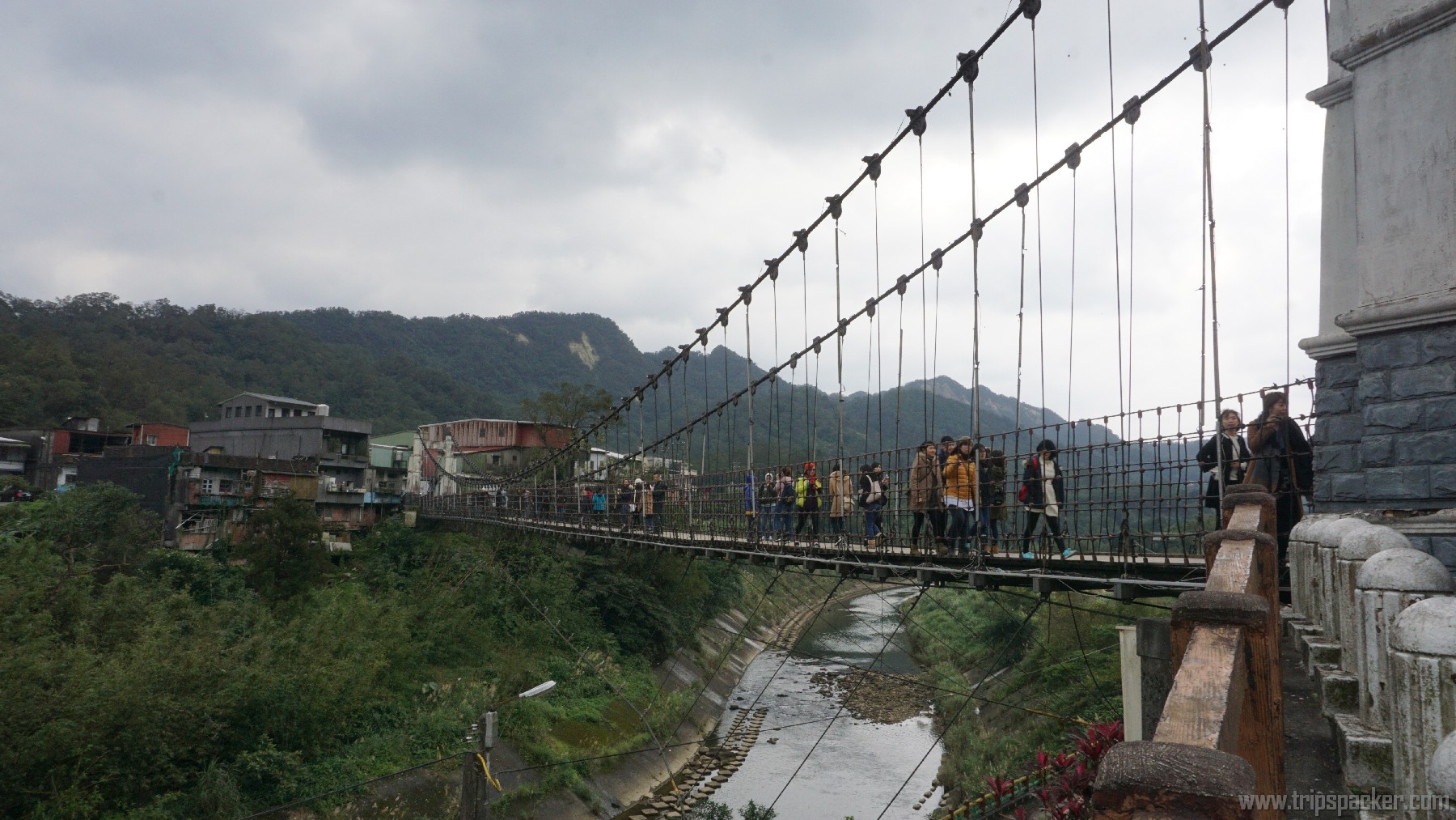ส่วนฝั่งจรงข้ามสถานีรถไฟ Shifen ก็จะเป็นสะพานแขวนครับ ซึ่งเป็นสะพานแขวนข้ามแม่น้ำ ที่สูงเเละยาวทีเดียว
