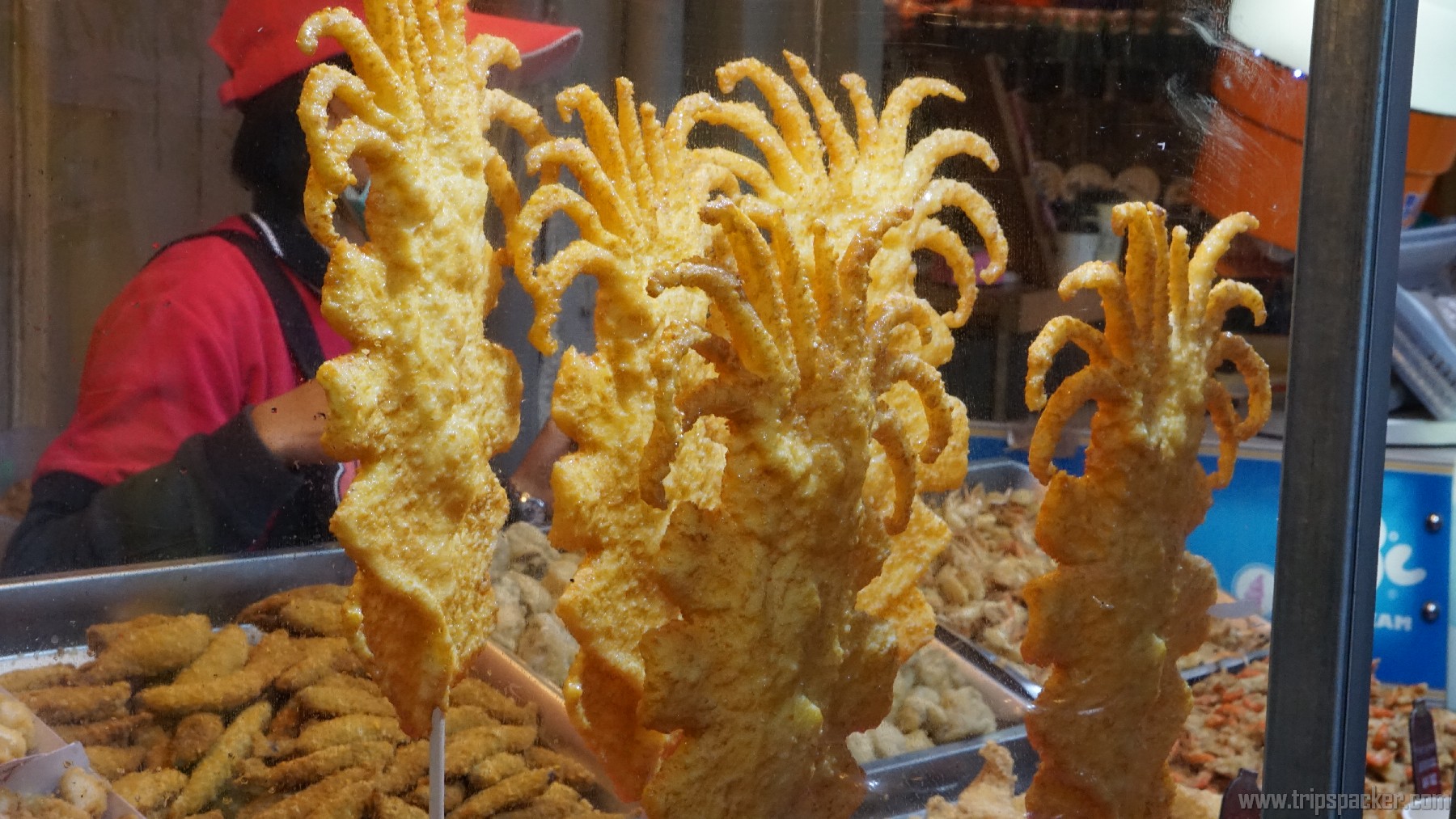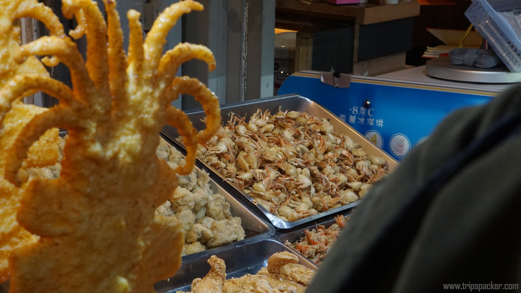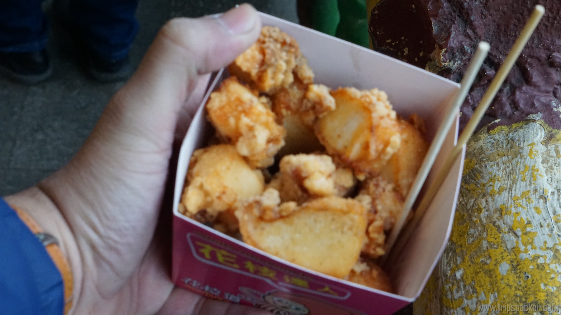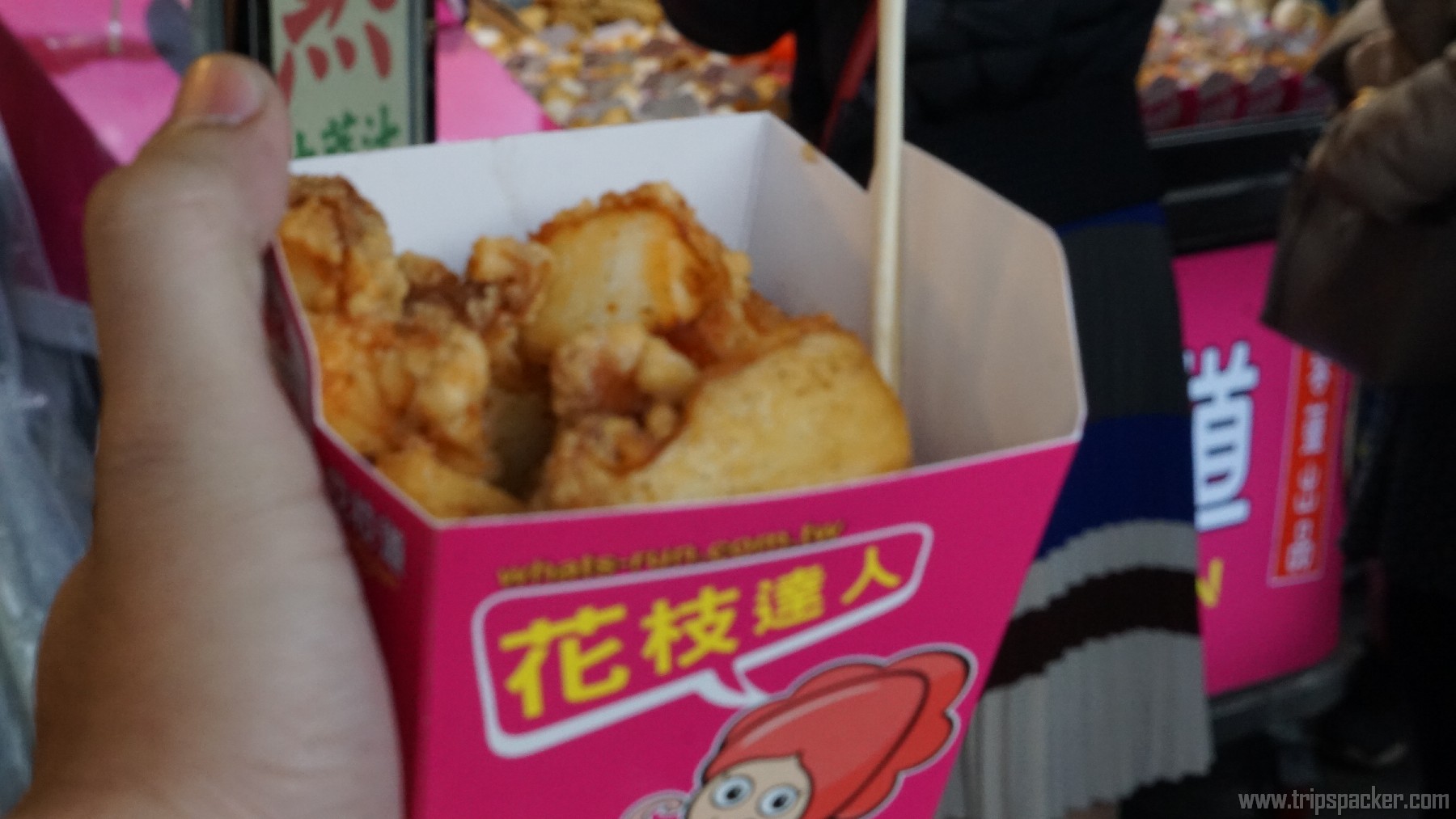ระหว่างเดินกลับ ก็เห็นร้านนี้ เป็นปลาหมึกชุบแป้งทอด มีให้ชิมฟรีด้วยน่ะ พอชิมแล้วก็ติดใจ อร่อยดีครับ นิ่ม หอม รสชาดกำลังพอดีเลยครับ กลอ่งละ 100 หรือ 150 TWD นี้เหละจำไม่ได้