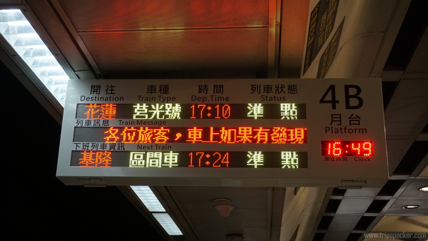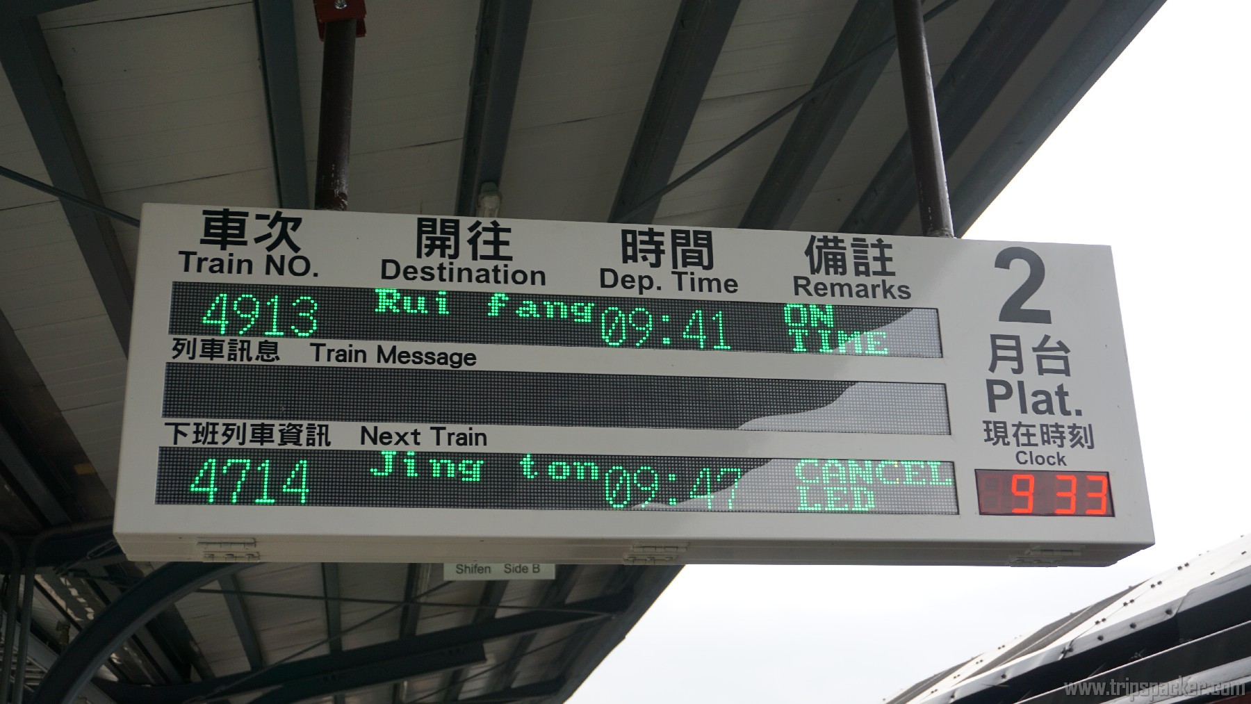 เริ่มต้นการเดินทางจาก Taipei main station โดยเราออกจากไทเปกันด้วยรถไฟ TRA รอบ 17:10 pm. ซึ่งคืนนี้เราจะไปนอนกันที่ Ruifang เพื่อที่จะได้ออกเที่ยว Shifen, Pingxi และ Jiefen ในวันพรุ่งนี้ตั้งแต่ตอนเช้า