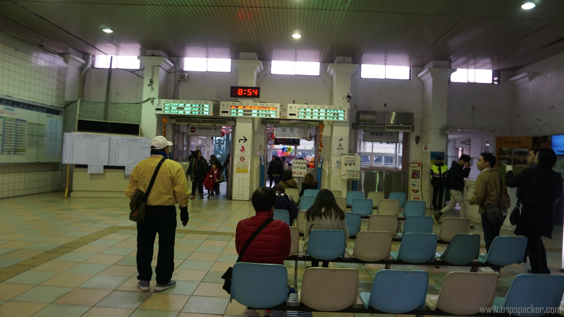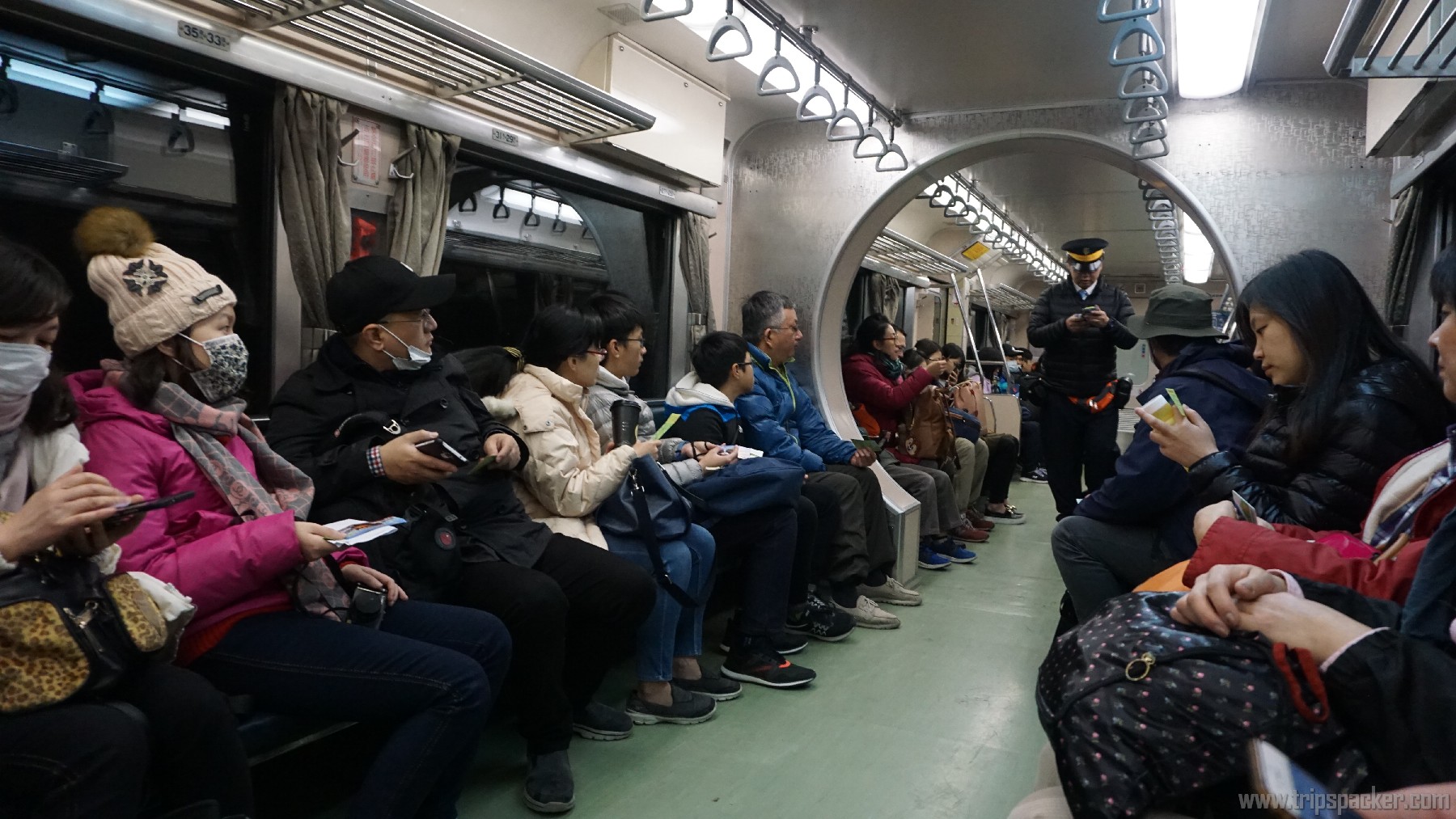 ได้ตั๋วแล้วก็เดินไปรอรถที่ชานชลาได้เลยครับ โดยในตั๋วจะใม่มีการระบุเวลาและที่นั่งน่ะครับ ทันรอบใหนก็ไปรอบนั้น ใครขึ้นก่อนก็เลือกที่นั่งได้ตามใจชอบเลย และที่สำคัญคนเยอะมากครับ