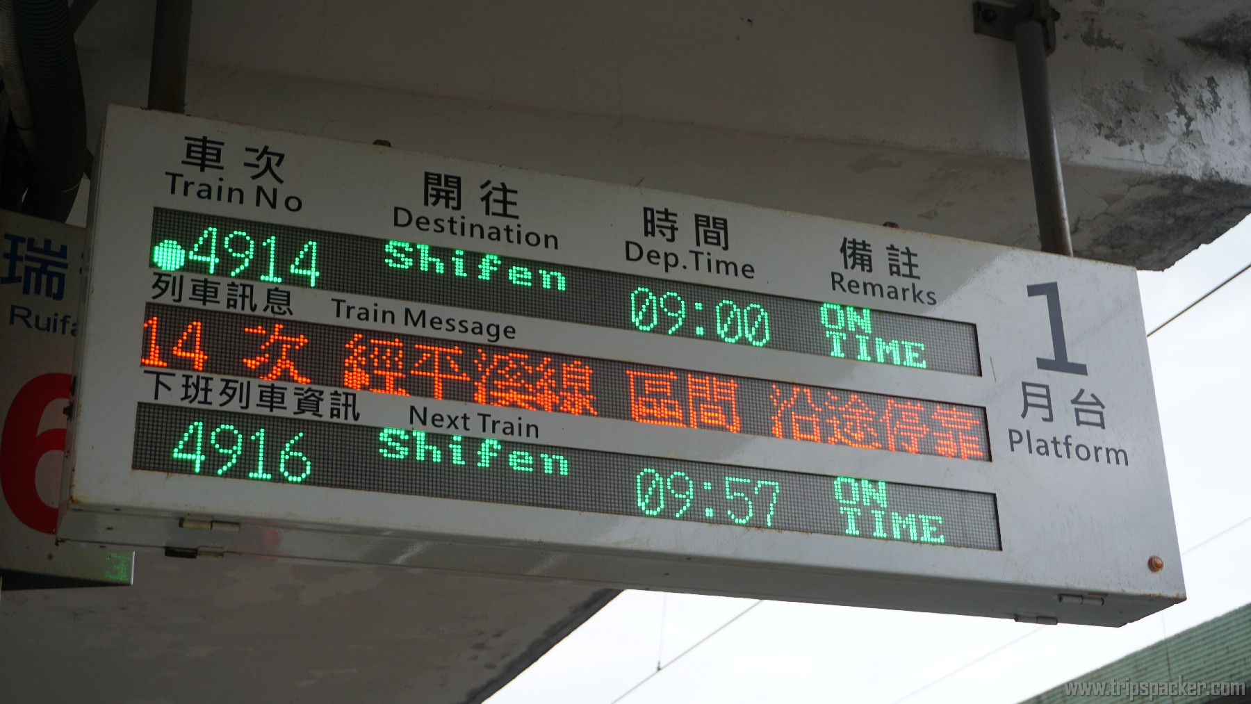 อันนี้เป็นตารางเวลารถไฟจากสถานี Shifen ไป Pingxi สุดปลายทางที่สถานี Jingtong